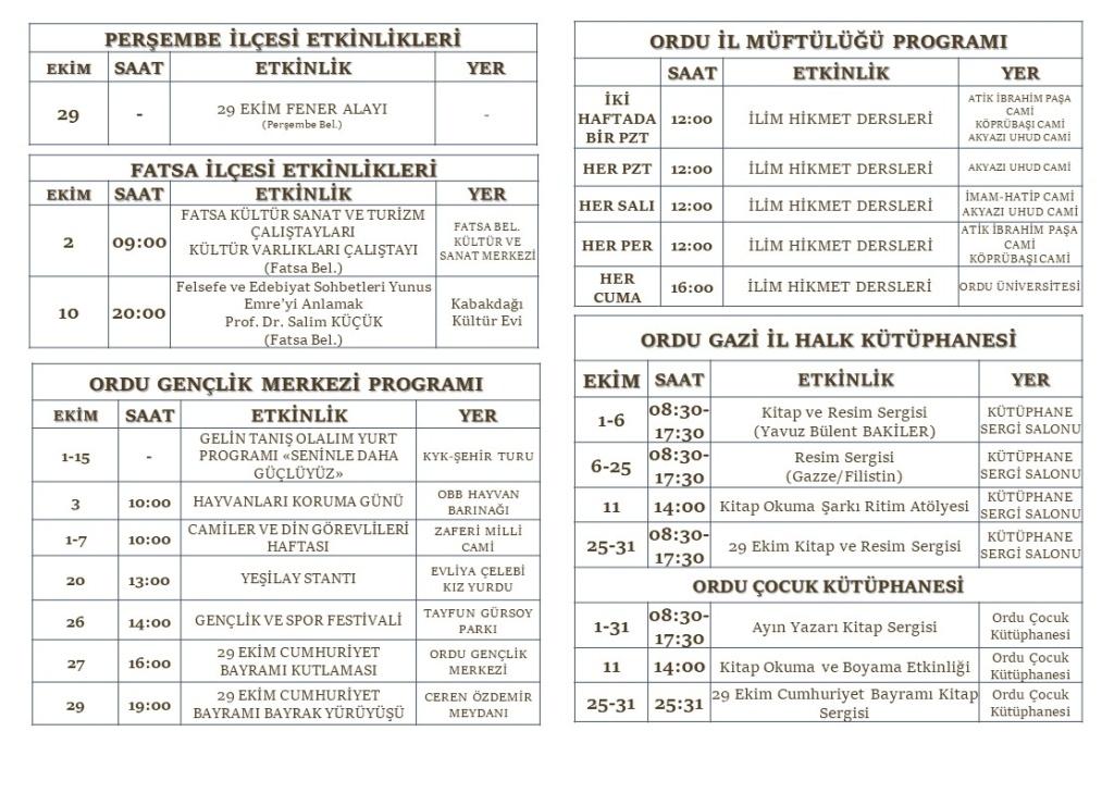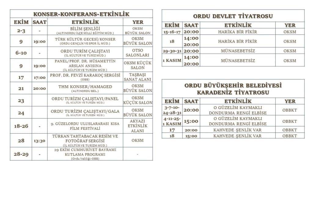 Ordu Ordu Valiliği İl Kültür ve Turizm Müdürlüğü'nün "Kültürel Etkinlik Takvimi Ekim 2025Valiliği İl Kültür ve Turizm Müdürlüğü'nün "Kültürel Etkinlik Takvimi Ekim 2025"